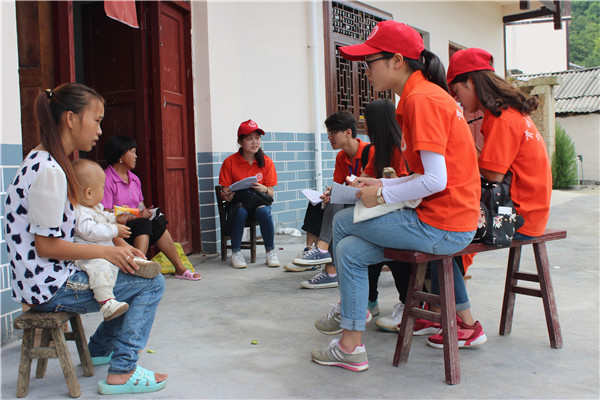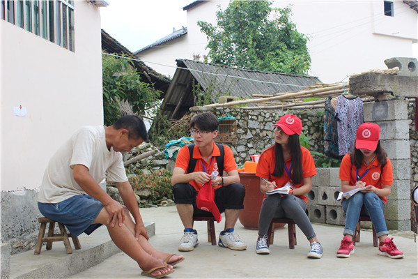 2016年7月18日早上九点,社会实践服务队的志愿者们来到冬妹村的纳赖田组进行入户调查。