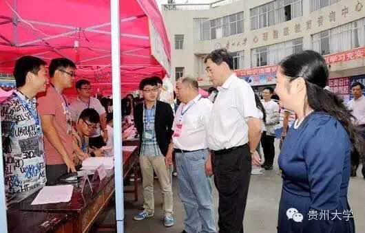 上午十时许,贵州大学党委书记陈坚,副书记杨未,副校长赵德刚等校领导亲临法学院迎新点指导迎新工作,了解新生报到情况,并与工作人员亲切交谈。法学院研究生会主席杨鸿猷介绍到,法学院作为全校唯一的研究生比本科生人数多的学院,迎新工作任务重,时间紧,要求高,给大家带来了不小的困难,但是全院师生都提前做了很多准备工作,注重每一个细节,报道工作井井有条,为新生提供一个良好的入学环境。陈坚书记对法学院的迎新工作表示肯定,希望迎新工作人员要做好接待服务,为新生及家长提供全面、热情、周到的服务,保证学生顺利、快捷入学。