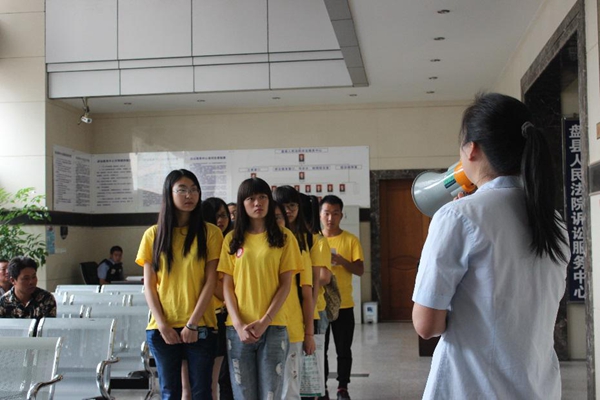 2015年7月14日,法学院党委书记胡小兵带队赴盘县人民法院开展调研及暑期主题社会实践活动。法学院党委副书记石明昌、副院长张林鸿、院学生科科长贺明吓、康军副教授、李一丁博士以及我院2013级13名本科生参加了上述活动。