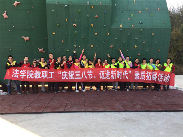 2018年3月9日下午,法学院教职工们在新学期工作会议后集体移至学校网球场,参加了以“庆祝三八节,迈进新时代”的法学院素质拓展活动。本次素拓活动旨在法学院教职工之间增强团队合作能力、促进交流与联系、加强集体参与感与责任意识,同时,这也是法学院工会对教职工们的安排的福利活动。