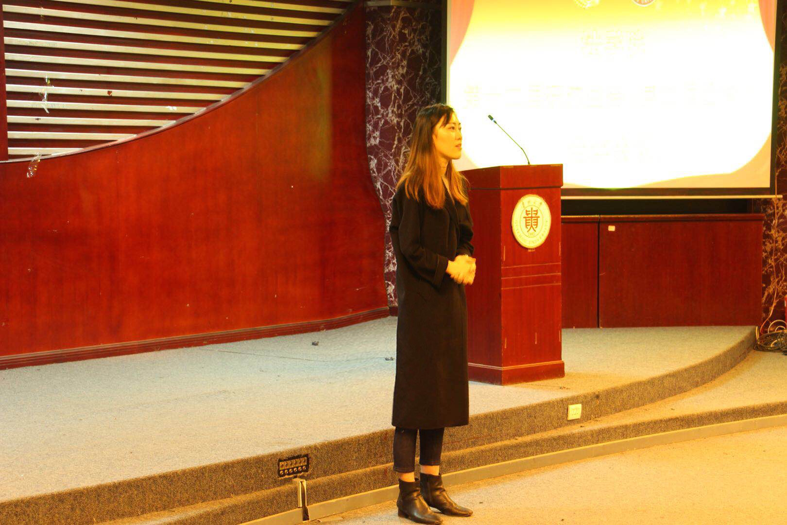 再次,研究生会与团总支各部门部长进行了自我介绍及经验分享。他们希望每一个同学都能在组织里收获快乐、收获友谊,学会如何协调好学生工作与学习、生活之间的关系,更重要的是学会坚持,尽所学所能实现最初目标。