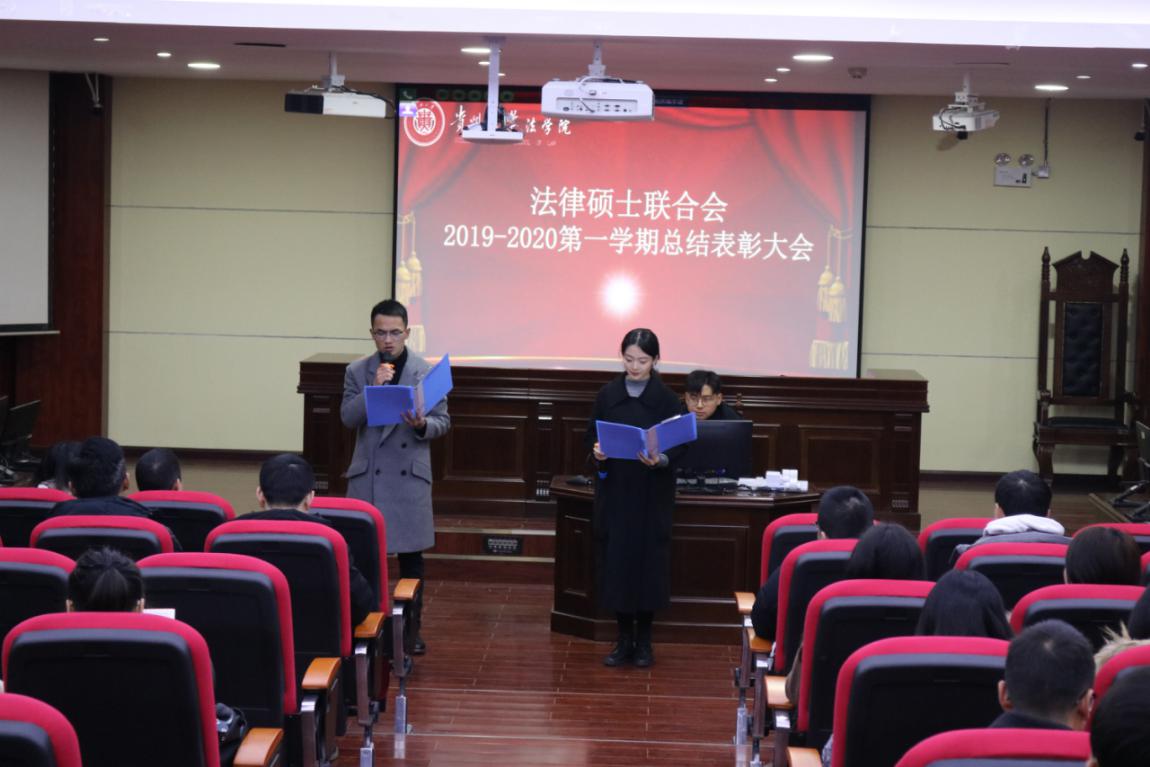 冬月潮未落,风起再扬帆。2019年12月30日上午十点贵州大学法学院法律硕士联合会在模拟法庭隆重召开了2019-2020学年第一学期工作总结大会。法硕中心办公室主任杜浩老师、第十届法硕联合会主席团成员、全体部长及干事参加了会议。