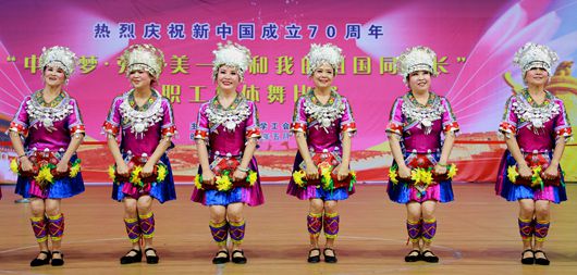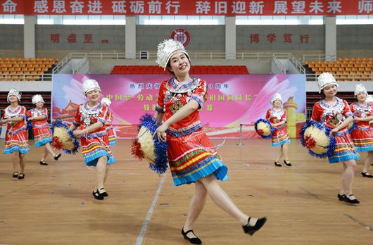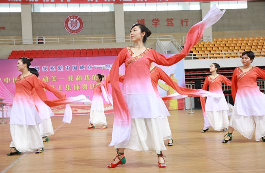 为庆祝新中国成立七十周年,5月10日中午,由校工会主办的“中国梦•劳动美—我和我的祖国同成长”教职工集体舞比赛在东校区体育馆举行。校领导骆长江、唐本文、张覃到现场观看比赛。全校19支队伍参加比赛。