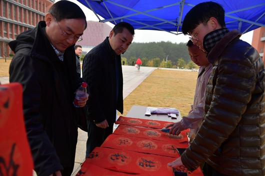 此次活动由校工会、团委、离退休处和党委宣传部主办,学生社团联合会、书法协会承办,共计送出350余副对联。