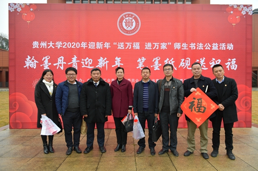 “欢聚一堂迎新年 欢声笑语贺新春” ……1月10日上午,我校西校区贤正楼广场和一楼大厅内,铺满了一副副红色对联,一声声新春问候,洋溢出浓浓的年味。“翰墨丹青迎新年 笔墨纸砚送祝福”贵州大学2020年迎新年“送万福 进万家”师生书法公益活动在此举行。校党委书记李建军、校党委副书记骆长江来到活动现场,为书写对联的师生送上新年祝福。