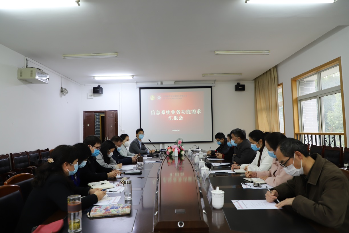 2020年4月3日下午,校工会业务功能信息系统化建设需求汇报会在工会303会议室召开。校党委副书记、校工会主席骆长江、校工会常务副主席陈莉琼、副主席蔡晓春、吴江南出席会议,校工会各科室负责人及信息系统建设技术人员参加会议。
