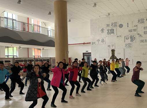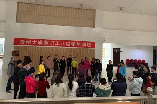 为积极做好疫情常态化防控,增强教职工身体素质,弘扬中华优秀传统健身文化,丰富教职工业余文化生活,由校工会主办的教职工“八段锦”培训班于2020年11月23日13:20在西校区谨正楼一楼大厅如期举行。
