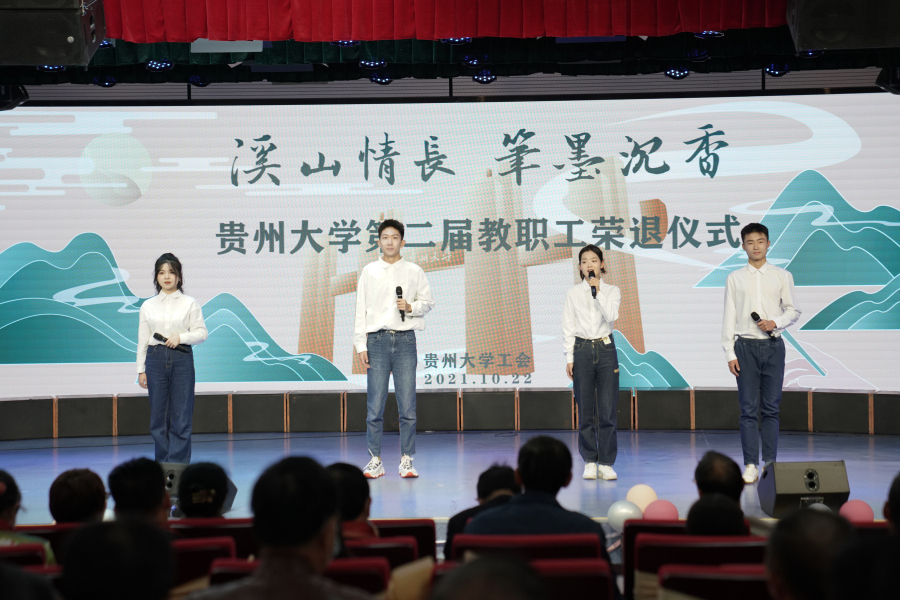 在由校工会主办的贵州大学第二届教职工荣退仪式上,荣退教师代表回忆起在贵大的岁月,几度哽咽。1022日,学校为202190余名退休教师举办了“溪山情长 笔墨沉香”教职工荣退仪式。贵州省教育厅党组成员、省教育工会主席王慧,贵州省教育工会副主席黄开斌,校长宋宝安院士,校党委副书记骆长江、令狐彩桃出席仪式,并向荣退教师送上祝福。