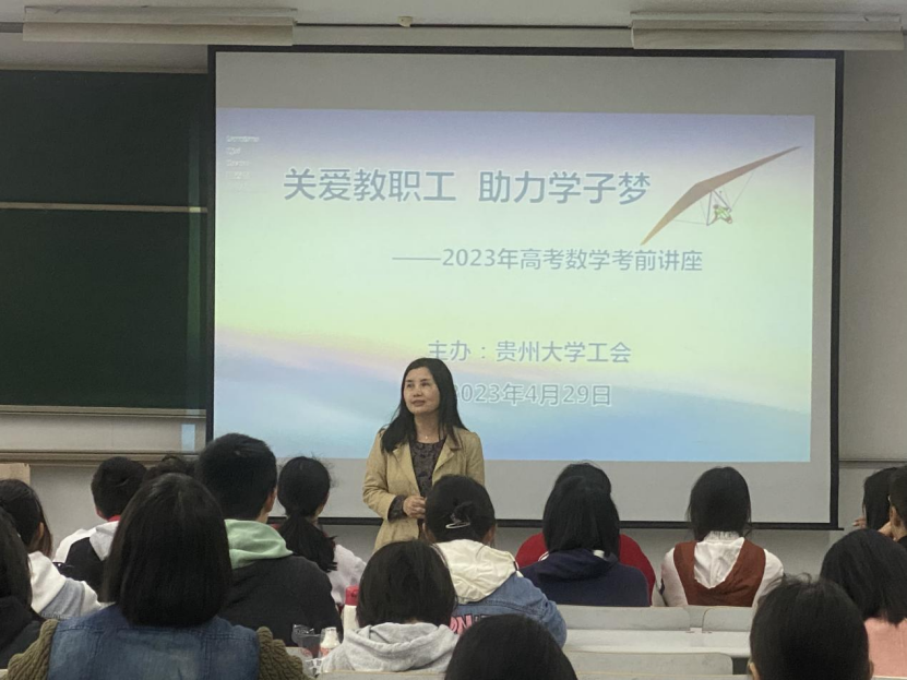 4月29日上午,由校工会主办的“关爱教职工 助力学子梦——2023年高考数学考前讲座”在贵州大学西校区东楼113DT教室举办,我校教职工及其子女60余人聆听了讲座。
