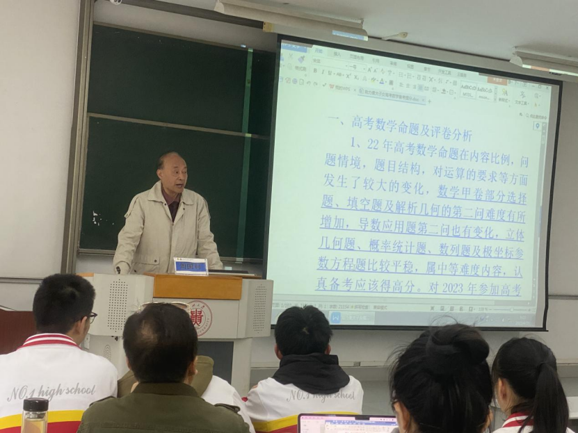 本次讲座邀请了贵州省首届教学名师、原高考评卷数学学科副大组长周国利教授作为主讲人。周国利教授围绕复习方式与答题技巧展开分享,并强调命题的应用性和创新性,介绍了多种相应的解题方式。周教授幽默风趣的语言风格为讲座营造了轻松愉快的气氛,他提供的意见和建议得到家长和学生的一致认可。