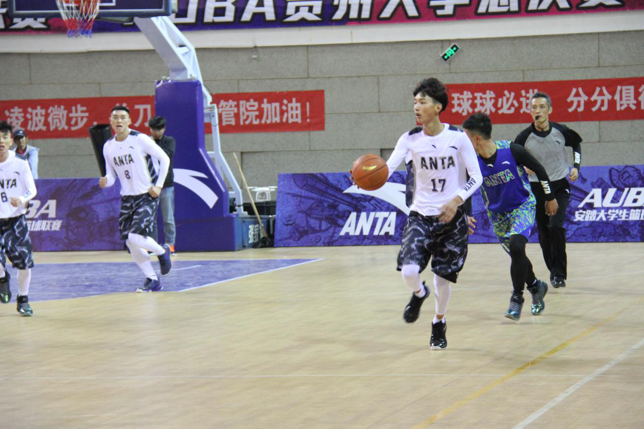 2017年11月24日下午17:00,安踏AUBA大学生篮球联赛贵州大学总决赛在贵州大学体育馆内隆重举行,来自贵州大学管理学院和体育学院男篮展开激烈角逐。