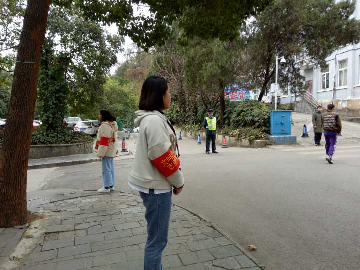 在三天的志愿服务中,管院志愿者们的身影昂首挺立在老朝阳路口、北区大门以及践行路路口。在志愿服务过程中,志愿者们顶着寒风,坚守岗位,及时劝阻行人踩踏草坪、随手扔垃圾、未经允许私自粘贴海报、私自张贴广告等不文明行为以及制止行人跨越道路栏杆等危险行为,为建设贵大文明校园奉献自己的一份力量。