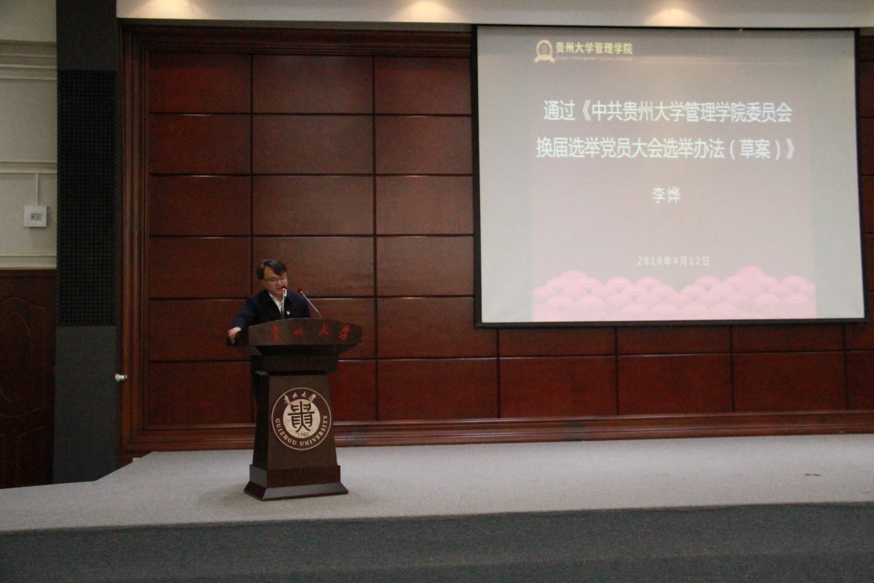 随后,学院党委副书记张亚军同志作《关于中共贵州大学管理学院委员会党费收缴、使用和管理情况报告》。报告对学院过去五年党费收缴、校党委组织部划拨党费使用及结余情况、党费管理情况、党费收缴、使用和管理工作中存在的问题作出了详细说明。并且总结了党费收缴、使用和管理工作中存在的问题和提出了相应解决措施,由党员举手表决通过。
