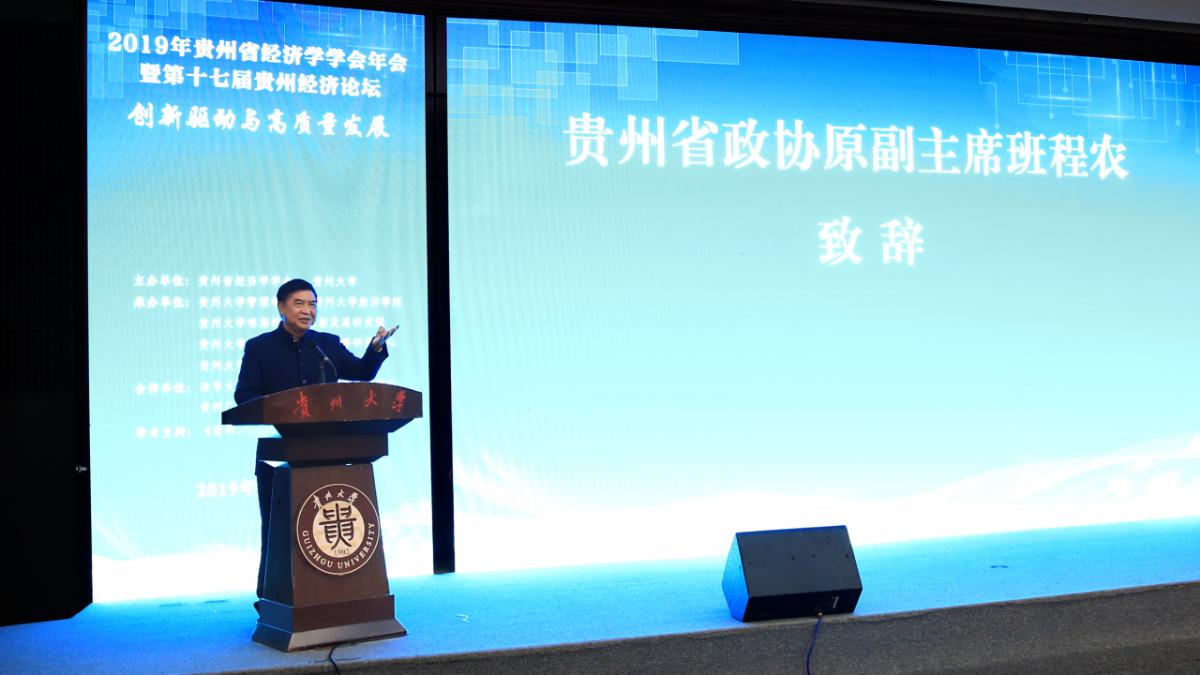 2019年10月19日,2019年贵州省经济学学会年会暨第十七届贵州经济论坛在贵州大学东区行政楼1号报告厅隆重召开。本次会议由贵州省经济学学会和贵州大学联合主办,贵州大学管理学院、贵州大学经济学院、贵州大学喀斯特地区创新发展研究院、贵州大学喀斯特地区发展战略研究中心以及贵州大学校友总会管理学院分会联合承办。此次会议的主题为“创新驱动与高质量发展”,吸引了来自省内外创新学者、政企创新实践者、科研院所相关领域人员300余名。与会代表共商创新驱动模式打造贵州经济发展新引擎,谋求新时代经济与社会的高质量发展。