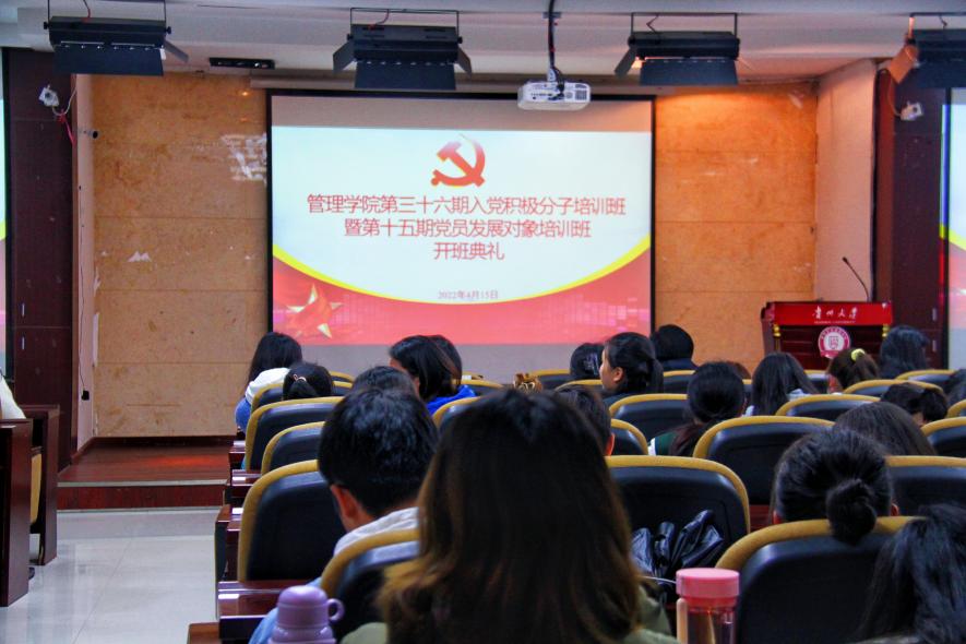 415日中午13点,管理学院第36期入党积极分子培训班和第15期党员发展对象培训班开班典礼在致远楼三楼报告厅举行。管理学院党委书记、管理学院分党校校长王秀峰,管理学院党委副书记、院长李烨,贵州大学正处级组织员周莉莉,管理学院党委副书记洪影秋出席本次开班典礼,本次入党积极分子培训班和发展对象培训班全体学员参加,开班典礼由班主任向珂莹主持。