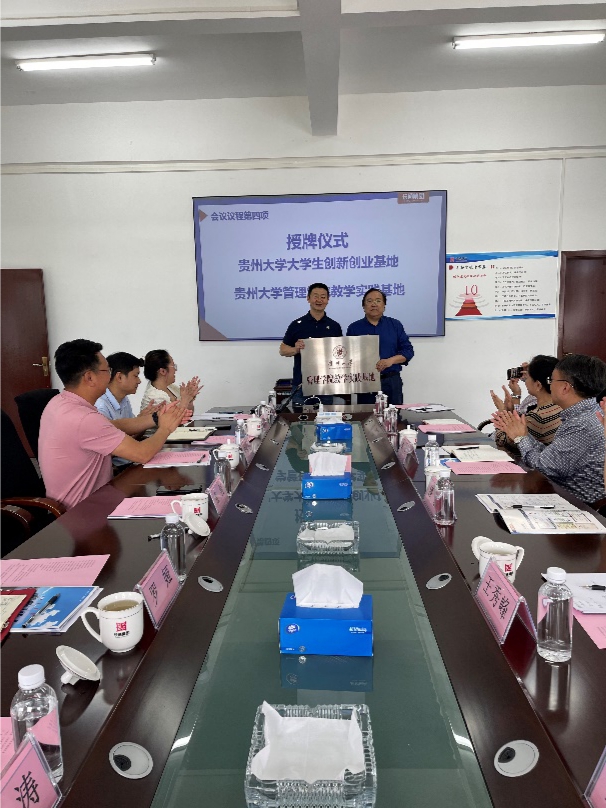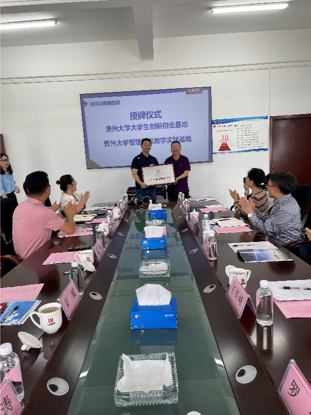 在长通电气三楼会议室举行座谈交流会,座谈会由李烨院长主持。座谈会上,漆思副校长表达学校就业创业行动,介绍了学校2022届毕业生就业的总体情况及本次走访企业的目的,希望长通集团这样的优质企业多留住贵州大学的毕业生,与贵州大学开展全方位的合作,促进产学研发展共赢。学院党委副书记洪影秋就管理学院本科生就业情况进行补充发言。学院院长李烨对贵州长通集团给予贵州大学管理学院的支持表示感谢,希望张钊董事长校友常回家看看,加强合作交流。随后,贵州大学副校长漆思为贵州长通集团授牌,授予“贵州大学大学生创新创业基地”,贵州大学管理学院党委书记王秀峰为贵州长通集团授予“贵州大学管理学院教学实践基地”。贵州长通集团领导和工作人员分别就企业发展及人才岗位需求进行了深入的互动交流。
