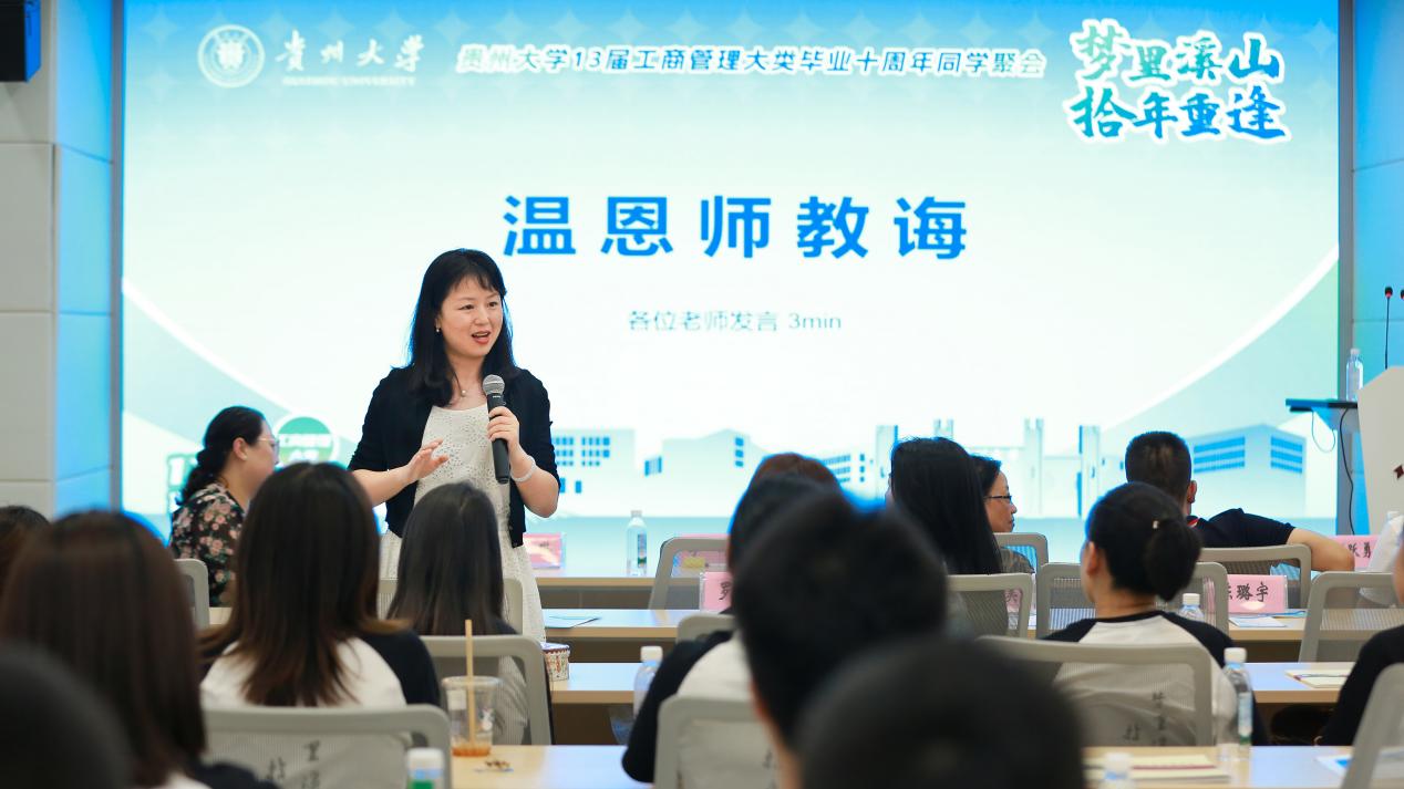 李烨院长代表学院热烈欢迎大家重回母校,他说,大家从全国各地赶来,毕业十年相会聚首,体现了大家对母校的深厚情感。他向校友们简要介绍了学校奋进行动和学院发展情况。希望各位校友珍惜今日难得的相逢时光,与同窗好友再叙当年奋斗时光、与授业恩师讲讲生活近况;希望各位校友能够充分发挥中间桥梁作用,放眼长远继续携手与学院共赴卓越征程,共谋创新发展。祝福和勉励校友们立足自身实际,安顿好生活与工作,努力做出一番事业。贵大管院永远是各位校友人生旅途上的港湾,欢迎大家常回管院歇歇脚、充充电,再出发。