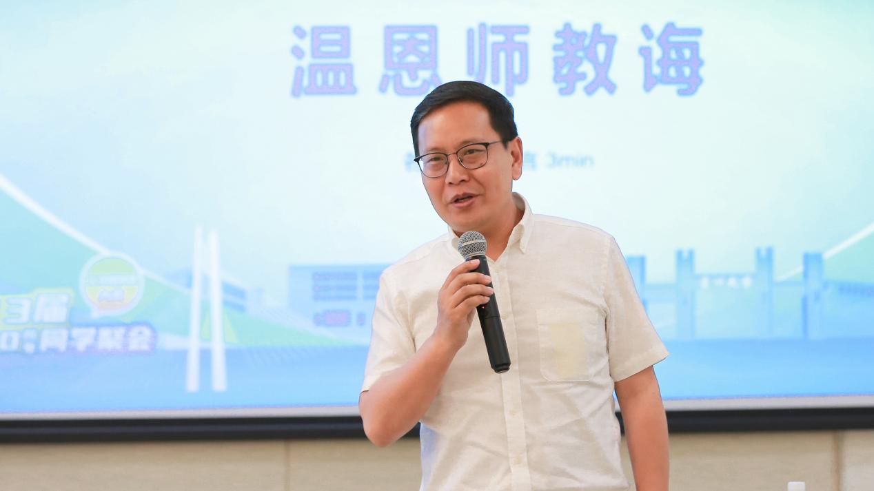 黎明校友作为校友代表发言,提及再度重回校园,感慨于学校和学院日新月异的发展,承载满满回忆的校区外景和教室内设等都令人惊喜;感慨于学院已取得的各类丰硕育人成果,每一项成果的取得都集聚了各位老师和后辈学弟学妹的共同努力,也让今日到场的校友倍感振奋和荣耀。在发言中,他回忆了在校期间的流年往事,对学院提供这样一个和同窗、恩师相聚再见的平台表示了感谢,表示作为校友将继续和学院协同奋进、共同实现更大成就。