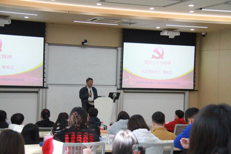 2023年10月21日,第三十九期入党积极分子培训教学顺利展开。校党委副书记骆长江为贵州大学管理学院分党校第三十九期入党积极分子培训班进行——党的二十大精神的讲解。