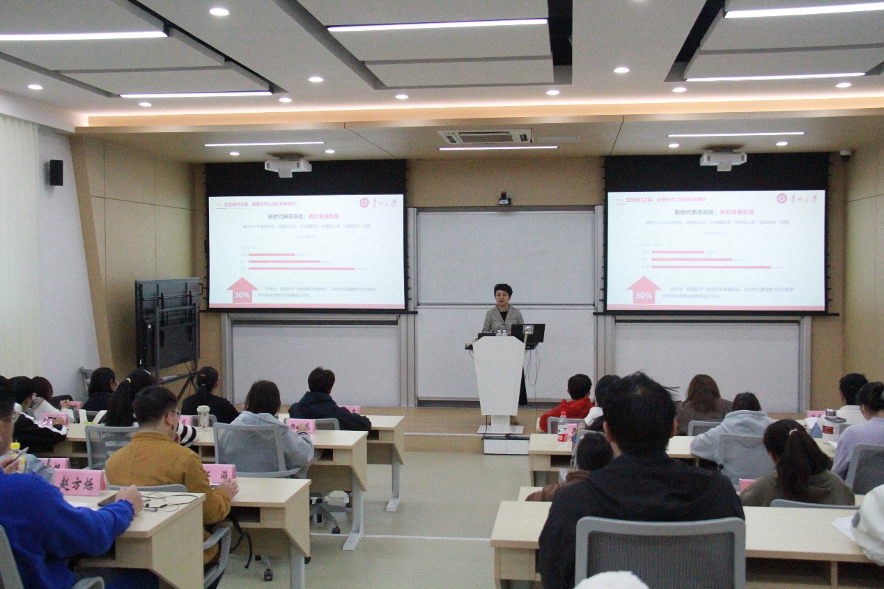 2023年10月21日,贵州大学管理学院分党校第三十九期入党积极分子培训班专题党课——习近平新时代中国特色社会主义思想,在管理学院致远楼102教室举行。贵州大学党委正处级组织员、管理学院党委副书记(主持党委工作)周莉莉担任主讲人。