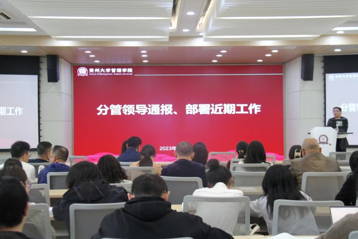 会议第一项议程是由贵州大学党委正处级组织员、管理学院党委副书记(主持党委工作)周莉莉教授首先传达了今年107日至108日在北京召开的全国宣传思想工作会议精神,同时详细介绍了1018日召开的全省高等教育高质量发展大会的学习内容,特别引用了省委书记徐麟在会上的讲话,强调要充分考虑我省人口结构变化和高质量发展需求,深入推进高校布局调整,集中力量做强贵州大学,推动本科高校突出优势、错位发展,推动高职院校产教融合、扩容提质,加快形成支撑现代化建设的高等教育新格局。会议还进一步传达了省第十三次党代会的主要精神,强调,在现代化建设新征程上,高质量发展是贵州全部工作的主题,要坚持以高质量发展统揽全局,全方位推动高质量,全过程聚焦高质量,全要素服务高质量。