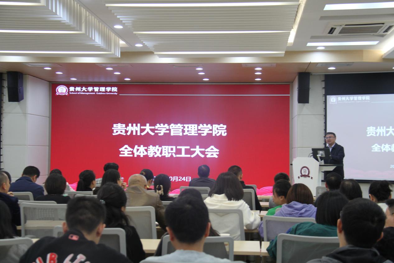 1024日中午,管理学院在致远楼3楼报告厅组织召开全体教职工大会暨思政课学习。