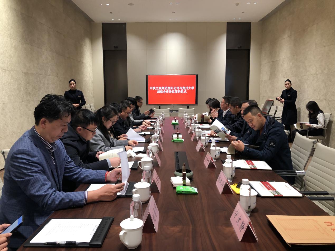 中铁文旅集团贵阳公司党委副书记、总经理胡永清首先代表公司对贵州大学管理学院的到来表示热烈欢迎,他表示,与贵州大学携手,最重要的目的就是践行省委省政府重大战略规划部署,依托花溪区得天独厚的资源禀赋,搭建资源互通、优势互补、发展共谋的产教融合发展平台,创新探索贵州特色文化旅游产业化的新模式。