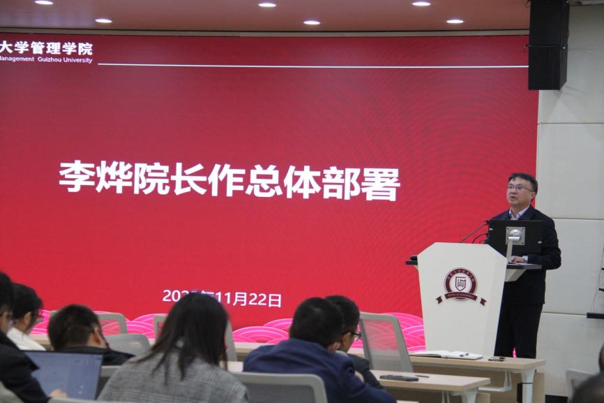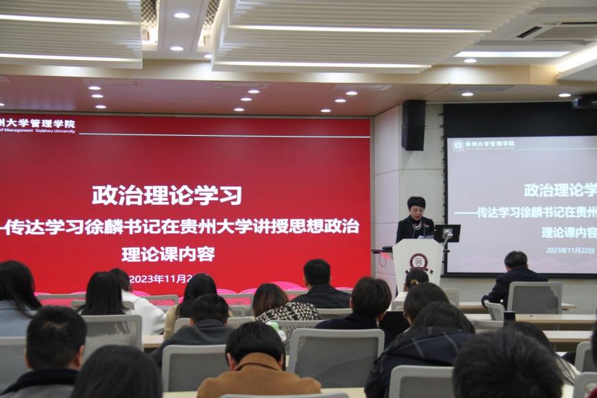 11月22日中午,贵州大学管理学院在致远楼三楼报告厅组织召开全体教职工大会暨政治学习。学院领导班子以及全体教职工参会,会议由院长李烨教授主持。