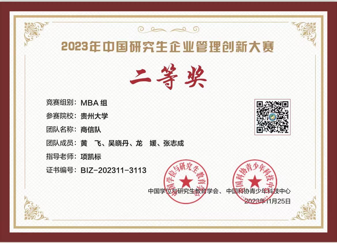贵州大学在中国研究生企业管理创新大赛中斩获佳绩