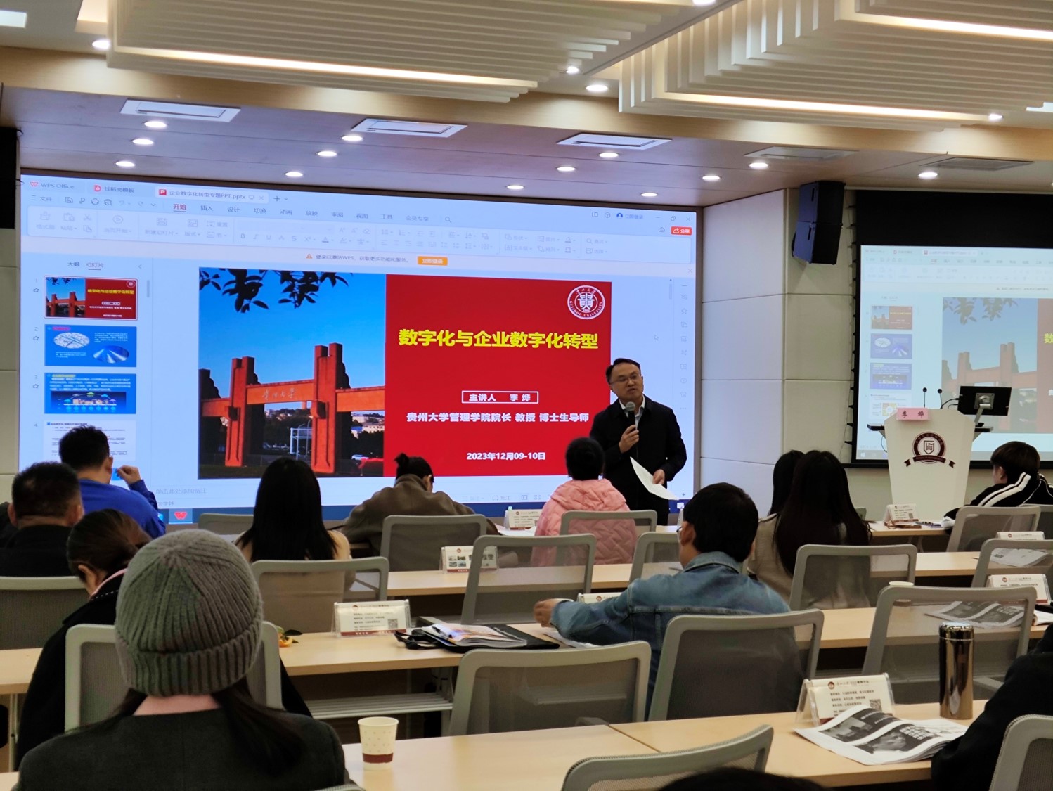 2023年12月9日上午9:00,贵州大学企业数字化转型高级研修班在管理学院三楼报告厅顺利开班。