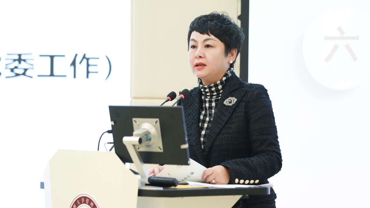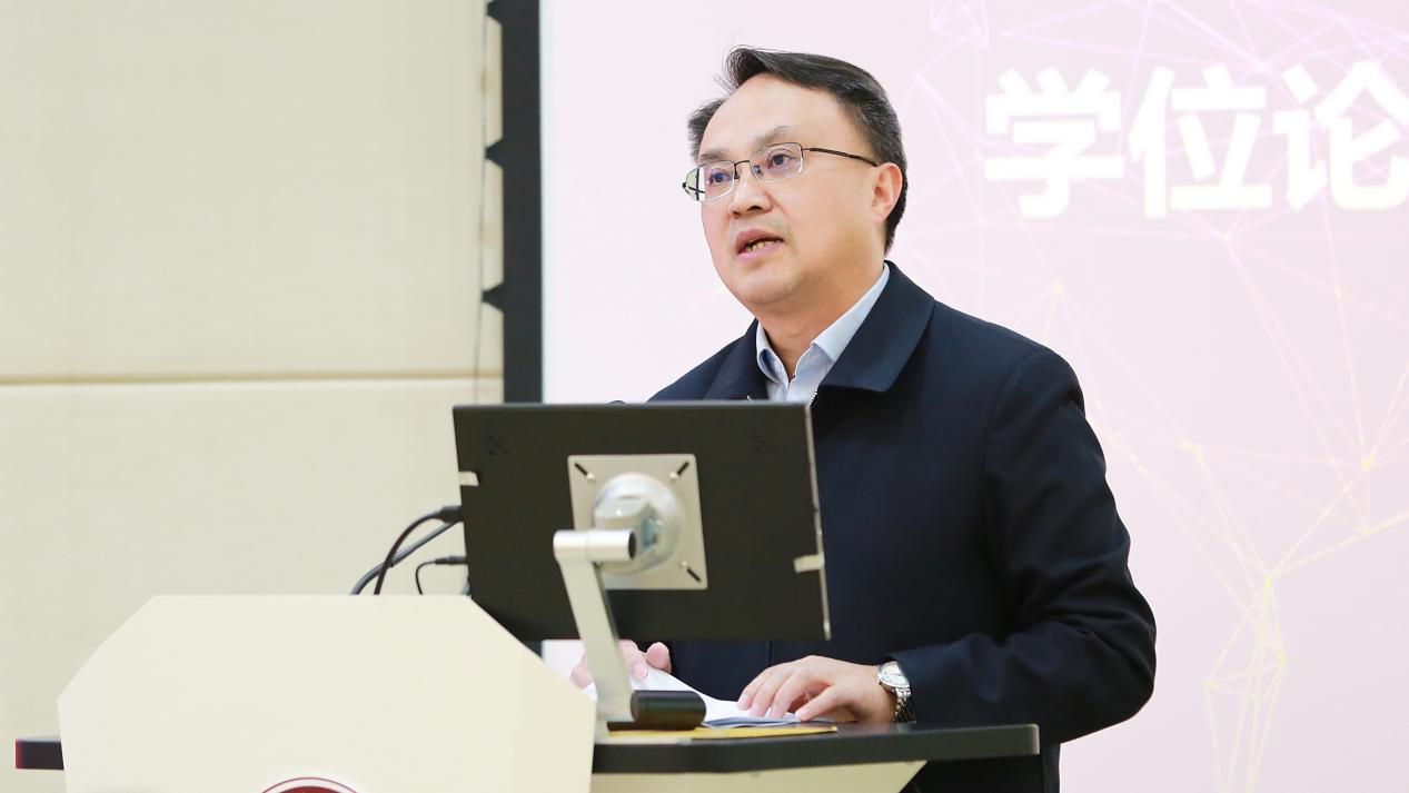 贵州大学研究生院学位管理科科长杨玥出席了本次会议,杨科长介绍了贵州大学近三年学位论文抽检的情况,并解读了《贵州大学研究生学位论文抽检结果处理办法》,还通报了学校2023年工商管理硕士MBA&EMBA学位论文的盲评情况。