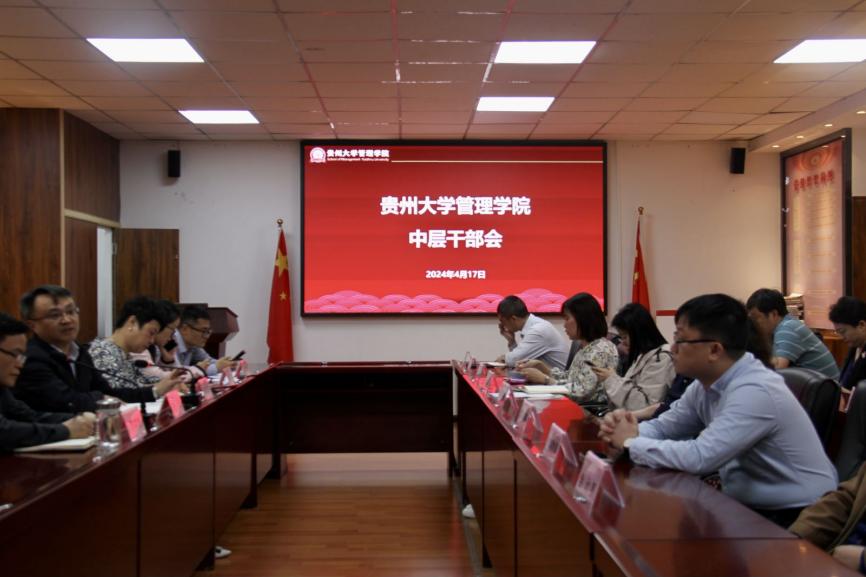 2024年4月17日,贵州大学管理学院在陈列室召开中层干部会议。学院党政领导、各科室(中心)负责人、教研室主任以及党支部书记参加会议。会议由学院院长李烨主持。