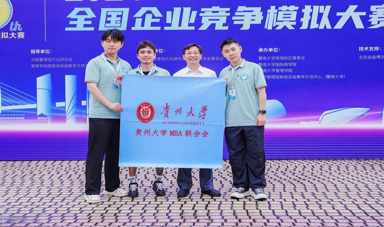 经过总决赛的激烈角逐,贵州大学代表队(队员:吴晓丹、杜开源、肖玮建)荣获 2024 年全国企业竞争模拟大赛一等奖。