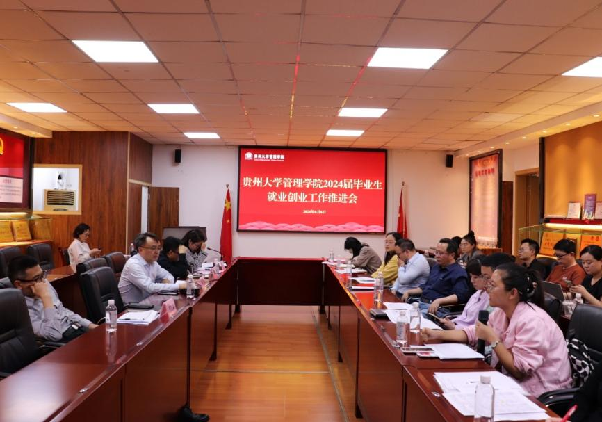 2024年6月6日,贵州大学管理学院2024届毕业生就业创业工作推进会在学院三楼陈列室召开,本次会议由管理学院党委副书记邓琳主持。