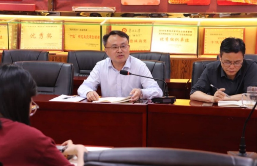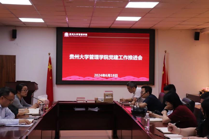 2024年6月18日中午,学院在致远楼三楼陈列室召开党建工作推进会,学院党政领导、各支部书记、副书记参会,会议由贵州大学党委委员、管理学院院长李烨主持。