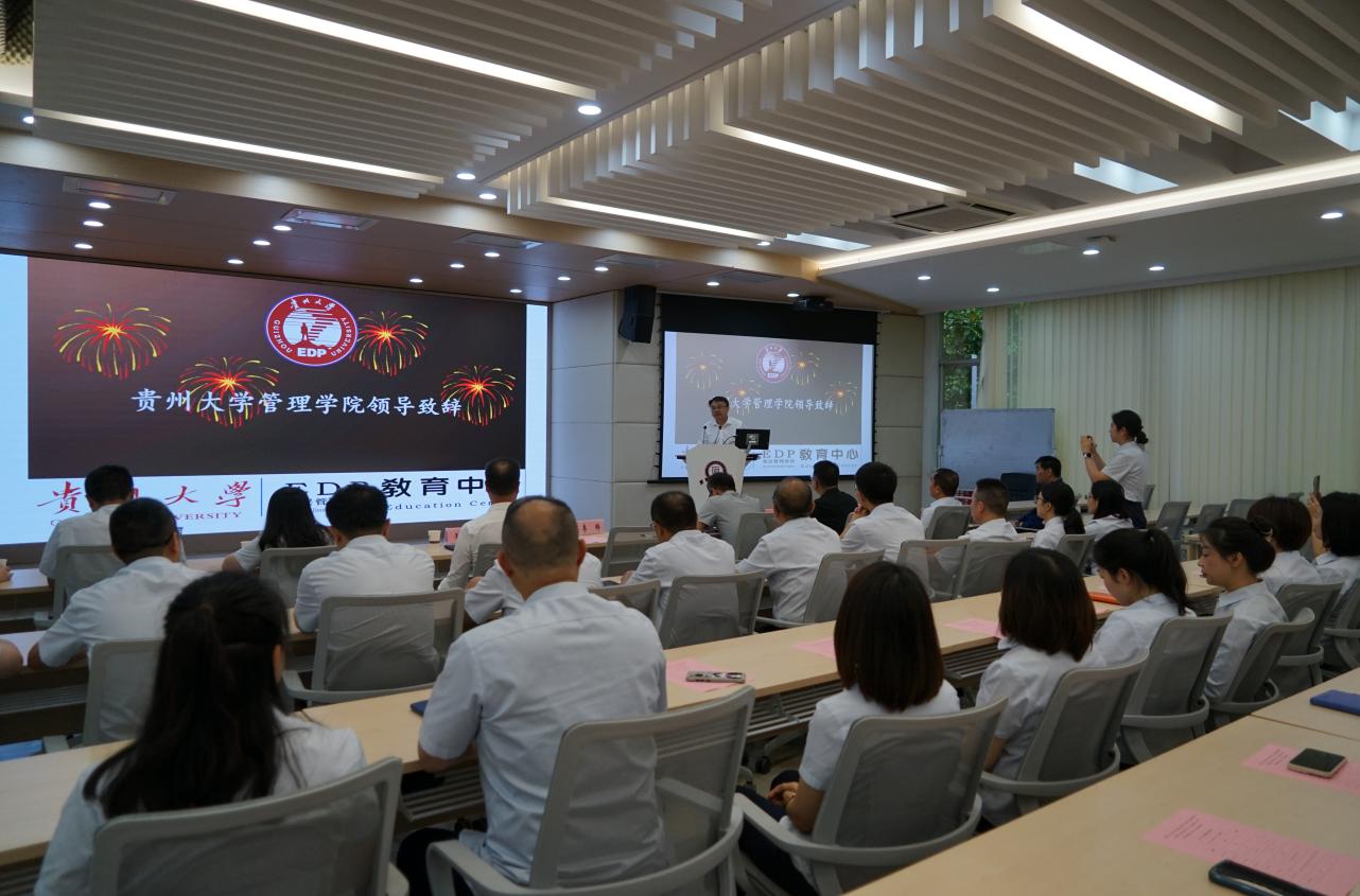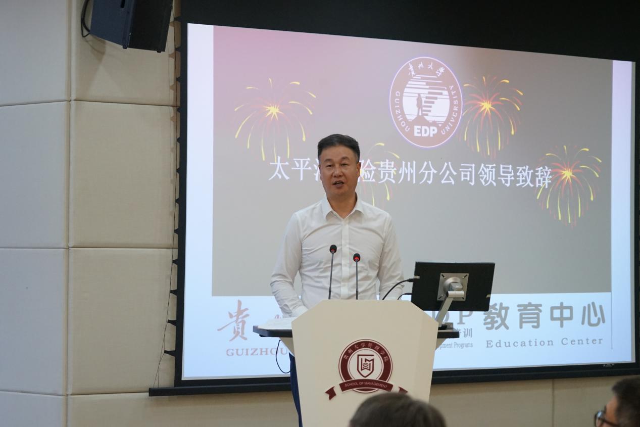 太平洋寿险贵州分公司党委书记、总经理王秋生在致辞中介绍了中国太平洋人寿保险公司贵州分公司的概况,并表达了对本次合作的三个期许,期许中不仅对本此合作的高度评价更是表达对贵州大学的由衷信任,并表示继本期培训班后,将持续有计划的在贵州大学管理学院开展系统的、针对性强的、多类型的人员培训。