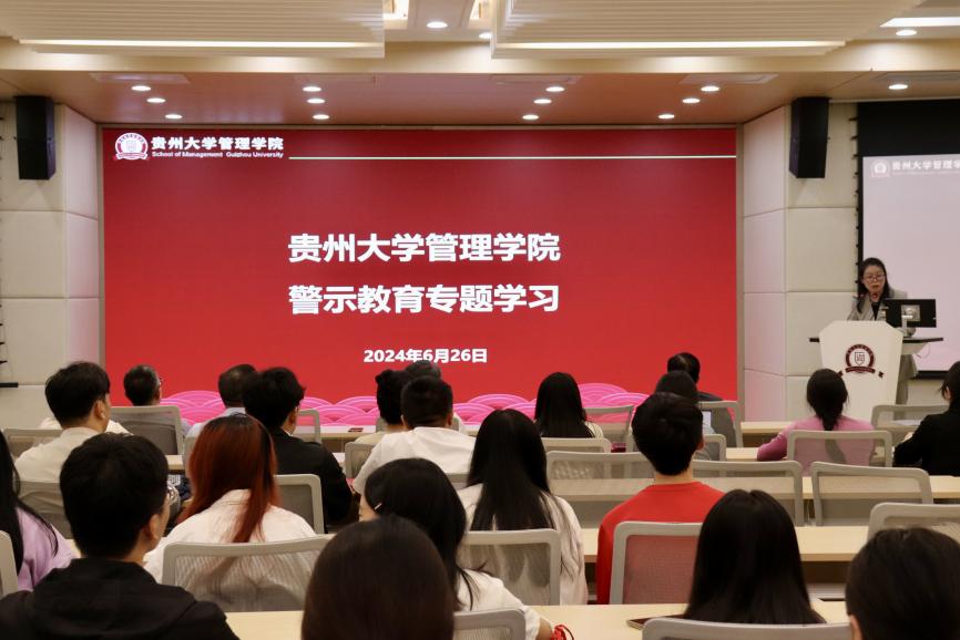 为进一步加强党风廉政建设,增强党员的纪律意识和廉洁自律意识,贵州大学管理学院于6月26日召开警示教育大会暨专题学习。会议由学院党委副书记兼纪委书记邓琳主持,学院全体教工党员和学生党员参会,会议在学院三楼报告厅举行。