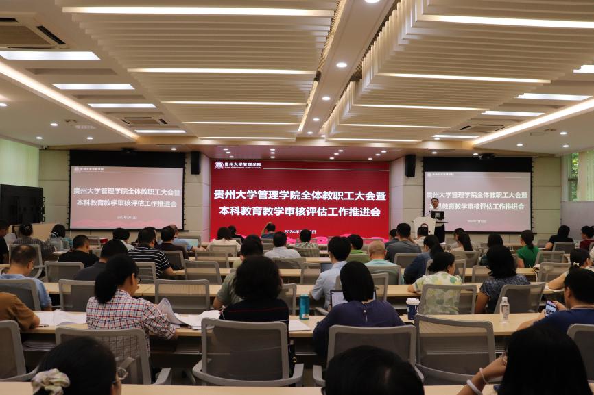 7月12日,贵州大学管理学院召开全体教职工大会暨本科教育教学审核评估工作推进会。学院党政领导、全体教职工参会,会议由院长李烨教授主持。