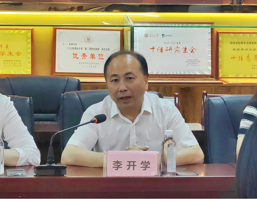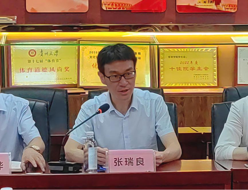 张瑞良同志宣布干部任免决定:王迪同志任贵州大学管理学院党委委员、书记,不再担任贵州大学旅游与文化产业学院党委书记、委员,不再担任马克思主义学院院长职务;李开学同志任贵州大学党委正处级组织员、管理学院党委委员,选派至管理学院工作,不再担任贵州大学文学院党委书记、委员职务。张瑞良副部长对两位同志的到任表示祝贺,并对他们在原单位的工作成绩给予充分肯定。他指出,王迪同志和李开学同志在各自岗位上积累了丰富的工作经验,具备较强的政治素养和业务能力,相信他们的加入将为管理学院的发展注入新的活力和动力。