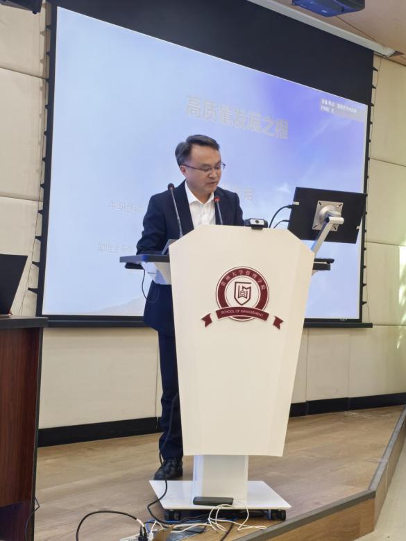 鸟欲高飞先振翅,人求上进先读书。2024年10月24日下午15:00,贵州大学管理学院邀请中国人民大学博士、中国社科院博士后刘光明教授在致远楼三楼报告厅举办第十三期致远大讲坛,题为“高质量发展之根”的学术讲座,讲座由管理学院菁英读书会会长吴睿迪主持。本次活动由贵州大学管理学院菁英读书会主办,贵州大学EDP校友会、清华大学贵州校友会、复旦大学贵州校友会、浙江大学贵州校友会等20家校友组织参与协办。管理学院的本科生、研究生及其他高校校友代表共计约100余人参加。