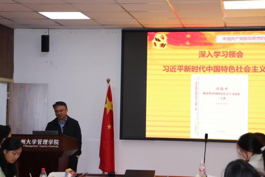 2024年10月27日下午,管理学院第四十一期入党积极分子培训班专题党课在致远楼301室顺利开展。本次课程由贵州大学党委委员、管理学院党委副书记、院长李烨主讲,主题为“中国共产党指导思想的确立与发展”。
