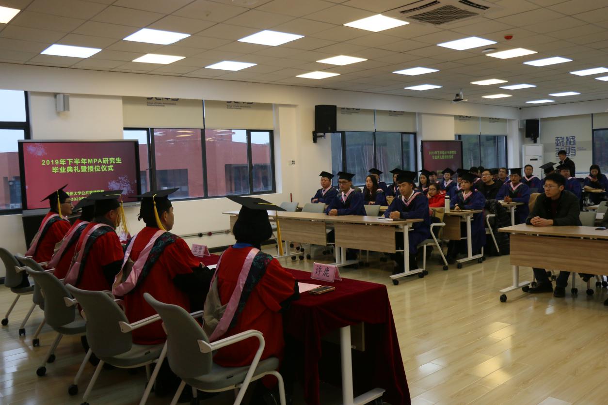 本网讯(MPA教育中心 钟祎 报道 |摄影 李贵发 许苗苗)惜别母校,远赴前程。2020年1月10日上午9:30,公共管理学院2019年下半年MPA毕业典礼暨授位仪式在雅正楼519会议室隆重举行。公共管理学院党委书记庄勇教授、副院长许鹿教授、副院长靳永翥教授、副院长兼MPA教育中心副主任王志凌教授、MPA导师代表季飞副教授、MPA教育中心工作人员出席典礼。典礼由王志凌教授主持。2015级和2016级的本次授位研究生及亲属们参加了典礼。