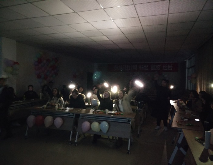 在主持人曹楠和郑澄澄热情洋溢地主持下,元旦晚会正式开始。世间最美好的情感莫过于与相爱的人十指紧扣,第一个节目是韩博文带来的歌曲《世间美好与你环环相扣》。韩博文动情的演绎打动了在场的每一个人。接下来杨书记声情并茂的为大家朗诵了毛泽东的《浣溪沙·和柳亚子先生》并为大家带来了英文版的朗诵。台下响起了热烈的掌声,通过杨书记的朗诵和讲解大家对这首词有了深入的了解,也感受到杨书记渊博的学识。郭院长以毛泽东诞辰126周年的契机并结合自己的亲身经历,为大家介绍了《毛泽东选集》、《毛泽东文集》等专著。并为大家朗诵和讲解了毛泽东的《七绝·改诗赠父亲》,激励在座的同学们刻苦学习,同学们也做出了积极地回应。下一个节目是党支部成员为大家带来了诙谐有趣的舞蹈表演《咋了baba》,带动了现场气氛。接下来501寝室带来了温情的歌曲《小情歌》带动了大家的情绪。接下来502寝室和503寝室共同带来的喜剧《音乐班会》和18级的小品《燃烧卡路里》,更是让全场捧腹大笑。罗发林为我们带来的歌曲《冰雨》、303宿舍带来的合唱《盛夏的果实》、213宿舍带来的歌曲《那么骄傲》、何婷婷的《fly away》、王传浩的独唱给大家带来了一场听觉盛宴。刘传雪、何娅的相声表演《忆童年》使观众的笑声不断迭起,全场气氛长时间达到高潮。快乐的时光总是短暂的,最后一个节目是由217寝室给我们带来的手语操:《感恩的心》。
