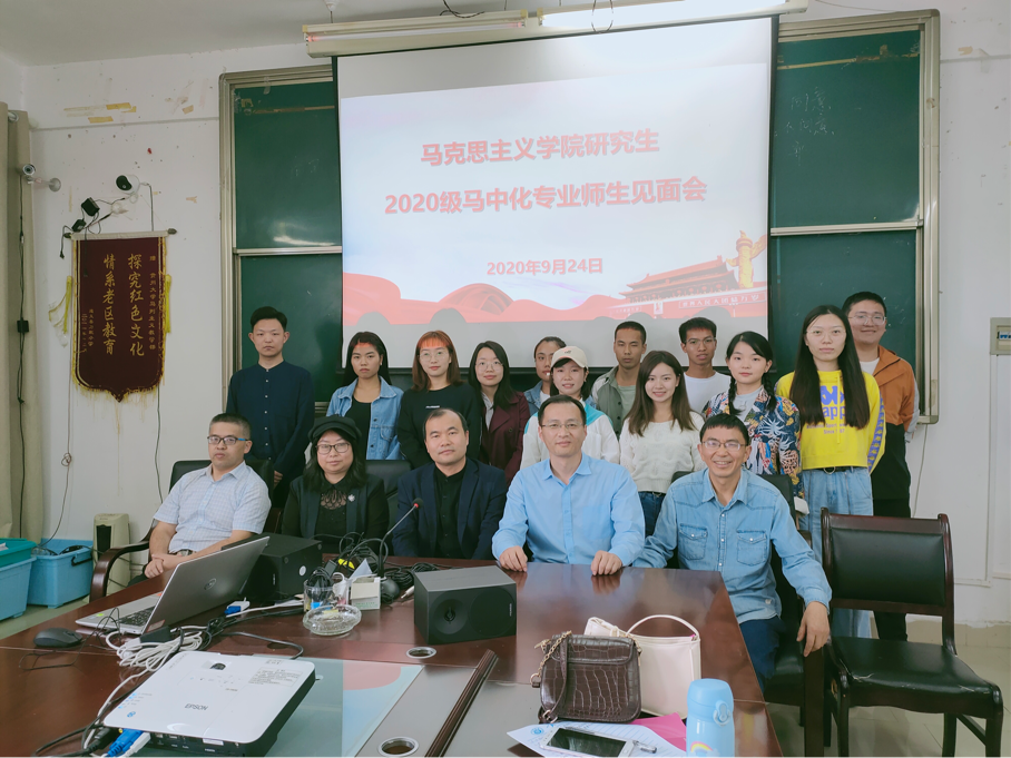 2020年9月24日下午1点,贵州大学马克思主义学院中国化方向2020级硕士研究生师生见面会于马克思主义学院6楼会议室举行。学院副院长郭红军教授、副院长李传兵教授、李治邦教授、王世明导师、杨兴英导师以及杨雪瑞等12名2020级马克思主义中国化方向的硕士研究生参加了此次会议。会议伊始,马克思主义学院副院长郭红军教授首先代表学院对新一级研究生的到来表示热烈欢迎。