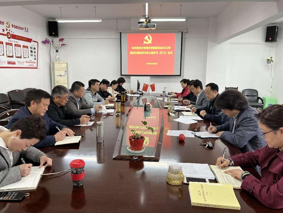 2022年5月20日上午10:00,音乐学院在802会议室召开“音乐学院党委理论学习中心组2022年第4次学习(扩大)会议”,音乐学院党委书记范斌、院长穆维平、党政领导班子成员、各党支部书记、副书记、各职能部门负责人参加学习。