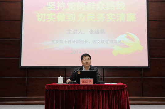 4月3日下午,省委党的群众路线教育实践活动第十督导组副组长、省文联党组成员、专职纪检员张绪晃在北校区