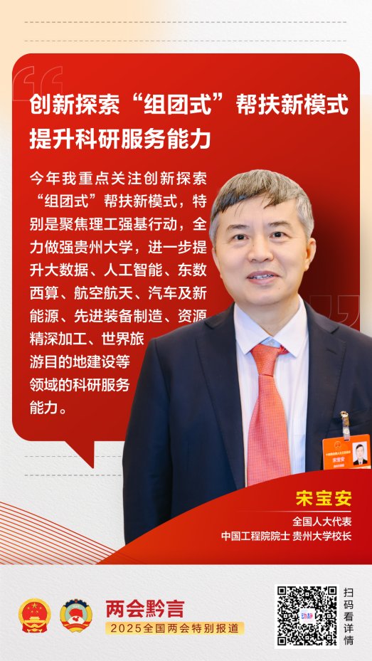 动静新闻客户端:两会黔言丨全国人大代表宋宝安:创新探索“组团式”帮扶新模式,提升科研服务能力