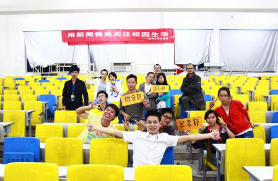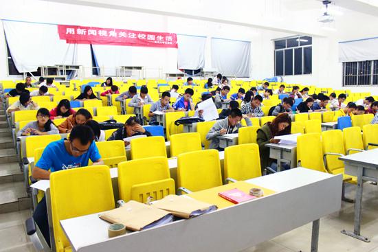 笔试结束后,记者团团友在一起讨论着记者团蔡家关分团“复兴”。为了准备此次笔试,大四的杨艳勤同学奔碌于白天的保研面试之后,依旧站在了笔试现场。已经毕业工作的第八届分团记者部部长黄亚运同学,为了笔试也来到了现场,表达了他对此次招新工作的大力支持。此外其他团友下午6点就到教室开始布置考试教室。他们说:“记者团对他们而言就是一个家,这次招新让原本以为要解散的家又注入了新的血液,所以他们觉得很幸福。”