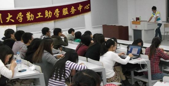 培训最后阶段,代世民还为同学们讲解了Excel制作技能,并以勤工报酬发放表为例,强调了制作过程中该注意的问题。晚9点,连续两个小时的培训活动圆满结束。