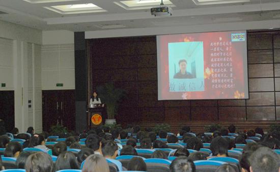 决赛现场可谓精彩纷呈,各学院代表班级都用独特而又有意义的PPT向大家展示了本班主题班会的精彩瞬间,展现了“诚信”的重要性及现实生活中的一些不诚信现象。如获一等奖的材料111班在班会时用“善意的谎言是否诚信”的辩论赛及全班诚信宣誓给观众难忘的印象;二等奖的生科122班以小时候用小手指拉钩上吊开篇,向大家介绍其班级开展的精彩活动;管理学院、动科学院等几个学院以助学贷款中涉及的诚信问题主持的班会也让诚信贷款深入人心……